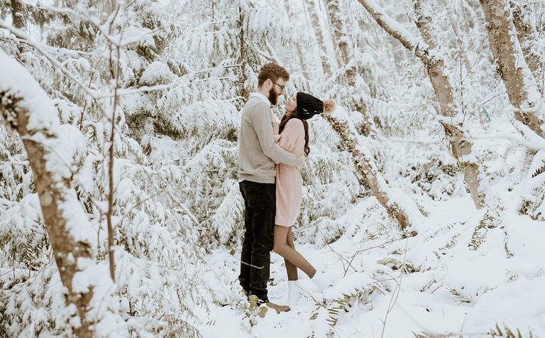 The amazing thing about this location is how easily you can get that perfect west coast foresty vibe. You will look stunning hidden away in the trees with all the beautiful snowy greenery!